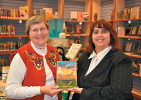 Facing the Sky goes on library shelf for the first time Beavercreek Community Library in Ohio, October 23, 2008. Toni White, Head Librarian (left), Rainee Grason (right). Photography by Tom Hock
